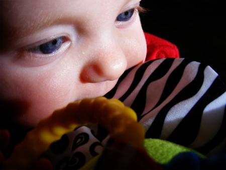 Naturally, all this grabbing of stuff around you means only one thing: Everything you snatch you try to put into your eager, drooly maw. Now I realize that the next several months (years?) I’ll be occupied with watching out for all the poisonous or sharp items that you inevitably will want to try to taste. Oh, goodbye life of simplicity and ease!