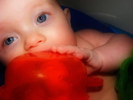 It’s actually quite hilarious to feed you, because of the way you get so excited and worked up. Your eyes bulge, your mouth opens WIIIIDE, and your arms and legs flail around like someone clamped a car battery to your backside. And then you WRENCH that spoon away from me, and proceed to gnaw on it for the next eight to ten minutes. It’s quite precious, but also I have feeling your sense of independence is only going to get more defined with the coming months.