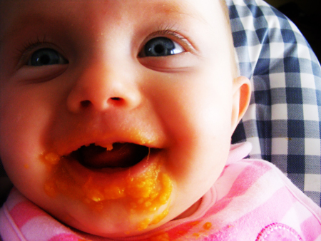 On a slightly related note, your poop has started to change in a few ways. It used to be fairly innocuous, both in aroma and texture — at times, it would be the color of a highway construction barrel. Now — now it is much different, not quite as offensive as grown up poo, but definitely beginning to get malodorous and a bit gross. I know it’s not really polite to discuss poop in a public format (and for this I’m sure you’ll make me pay during your teenage years), but it’s just another sign that my formerly toothless, exclusively breast-fed baby is growing up.