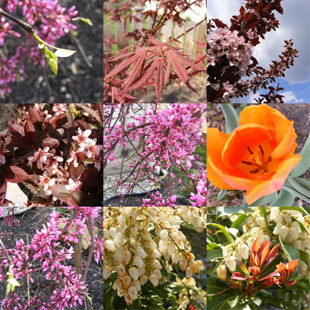 Happy May 1st. My garden, or rather, my back patio is all abloom with Weeping Redbud, Japanese Mountain Fire, Thundercloud Plum, tulips, Snowdrift Flowering Crab, and a tiny little Fountain Weeping Cherry.