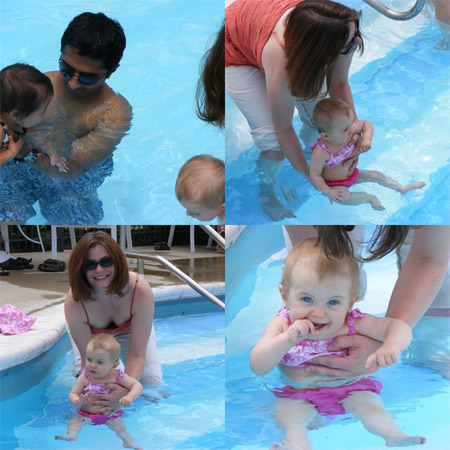 Laynie’s first birthday celebration was today, and it was held poolside-luau. What a lot of fun that was! However, C and I totally screwed up because we didn’t bring our swimsuits. Reese did get pool time, but at the expense of my capri pants. Totally worth it for her to experience a “big girl” swimming pool.