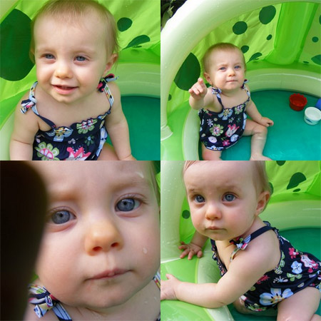 Growing up is hard work, it’s hard on a little body. She seems fine despite her new bumps. This weekend, she rocked her latest swimsuit (a clearance special found at Baby Gap). I like the suit because it’s dead easy to put on her squirmy little frame, as opposed to her current suits that where sedation is necessary to get her into the little bathing suits.