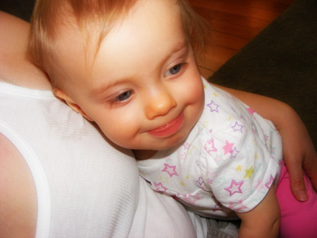 Locate her belly button. Again. And again. While making rasberry-sounds with her lips (a new favorite pastime).