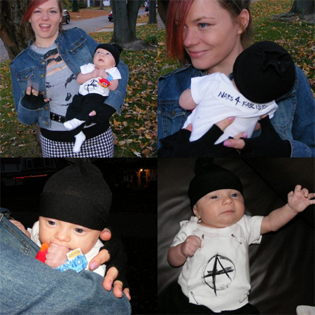 Great weather for trick or treating this year, great for little baby girl anarcho-punks. Here we are, looking darn bad ass in our home-made punk costumes.
