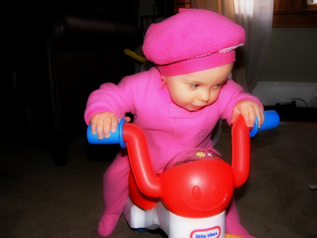 Tonight you literally tackled me when I came home from work. While you weren’t actually walking when you tackled me, you crawled really fast and then sort of pounced on me. You’ve clearly been watching football with your daddy again. Only Terry Tate “Office Linebacker” puts the pain on people like that, girl. Next time you pull something like that on me, I wanna hear a “WOOO WOOO!! PAIN TRAIN!!” out of you first.